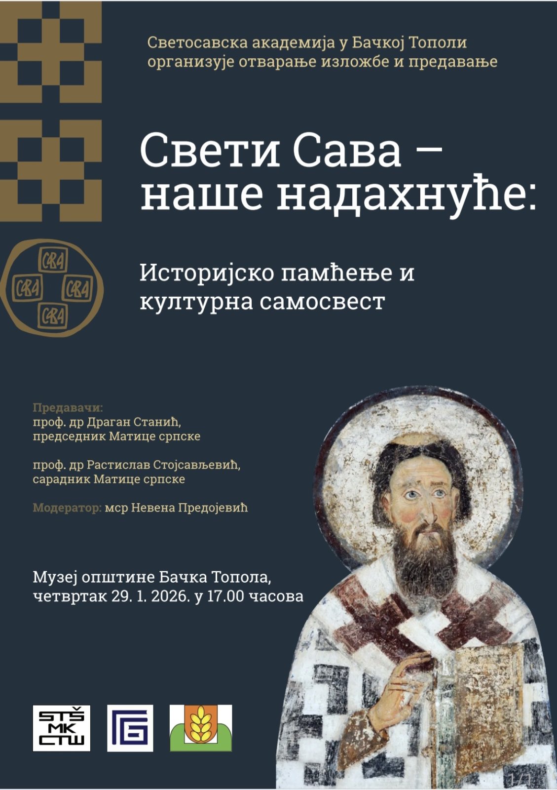 Позивница Позивамо вас да нам се придружите на предавању Свети Сава – наше надахнуће: Историјско памћење и културна самосвест у склопу Светосавских дана током којих обележавамо школску славу Светог Саву.